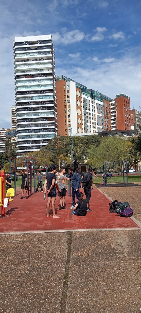Morning exercises in neighborhood park Buenos AiresHistorical monument on display @ UBA Law schoolBotanical Gardens, Buenos AiresMerienda, tea and wine Buenos Aires Monument of Bartolome Mitre, Avenida del Libertador y AgueroDaily blooming, floralis Generica Buenos Aires