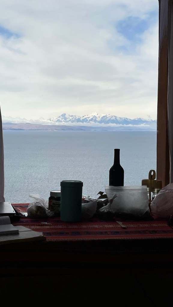 View of the lake and Andes from the Sun Palace ruinsSunrise on Isla del Sol